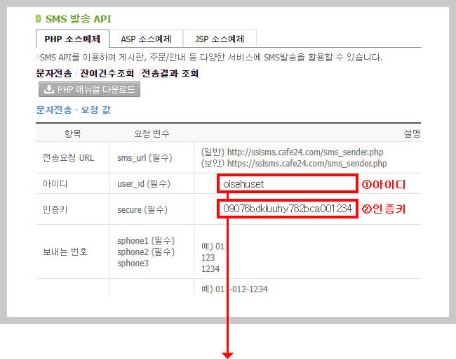 카페24 sms 인증키와 cafe24문자 아이디 찾는 방법과 적용 관련 설명